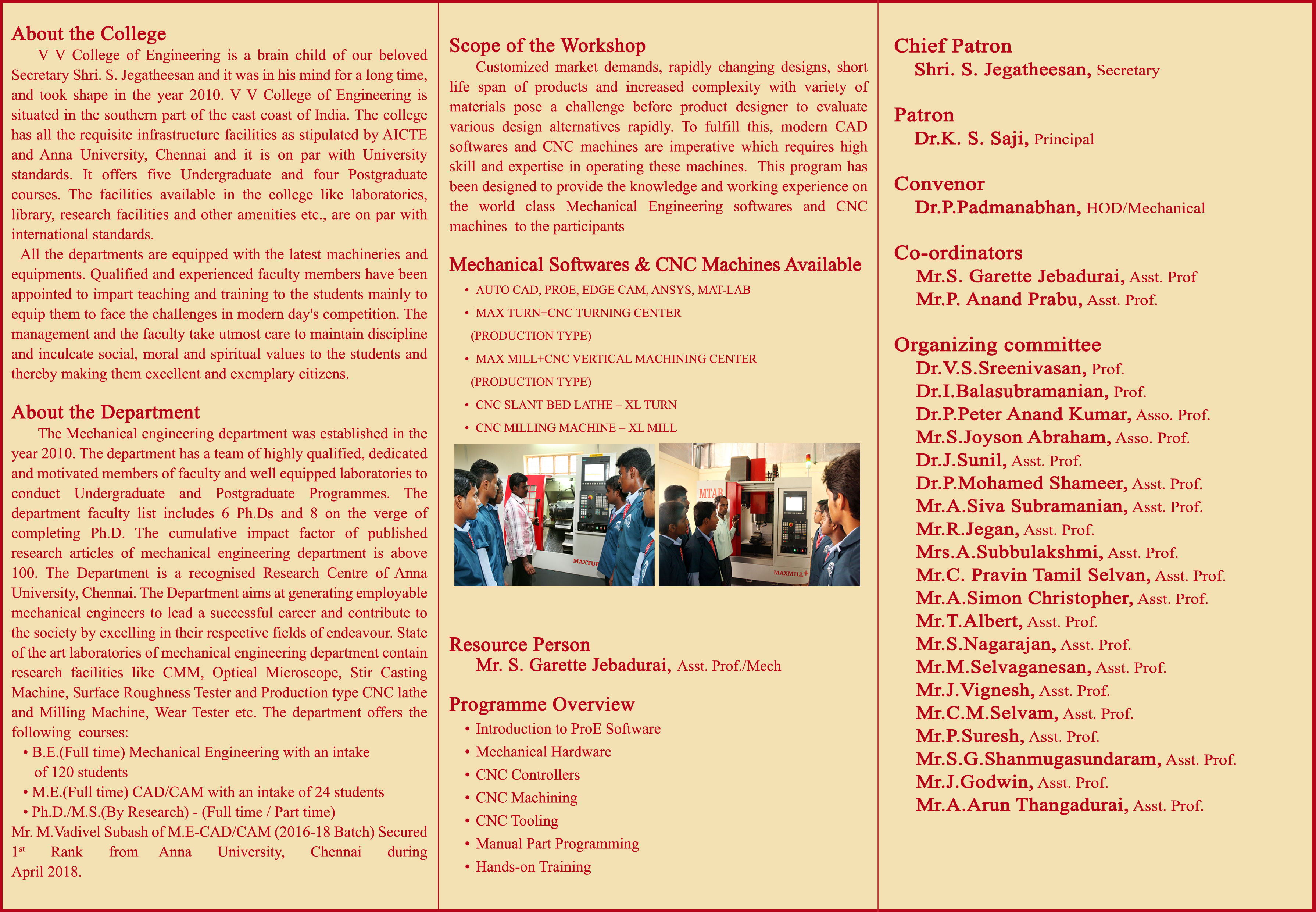 Department of Mechanical Engineering is organizing a Workshop on ''Recent Advancements in CAD/CAM Technology'' (RACAD/CAM'19) on Wednesday, 6th March 2019.