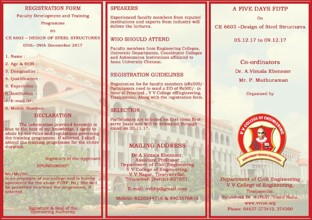 Department of Civil Engg. announces a 5 days FDTP on  Design of Steel Structures from 5th to 9th of Dec 2017
